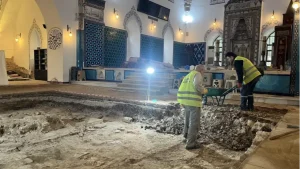 “Yapılacak olan imalatlarımız arasında caminin çevresinin drenaj imalatları da bulunmaktadır. Bu drenaj imalatlarının kazı çalışması sırasında caminin temelinde, doğudan batıya ve kuzeyden güneye uzanan kanallar olduğunu gördük. Şu an koruma kurulumuz ve diğer üye hocalarımız, bunun ne yönde olduğu konusunda çalışmalarına devam etmektedir. Yani bir havalandırma kanalı mı? Yoksa zemin suyu tahliye kanalı mı? Yada ısıtma sistemini sağlayan su kanalı mı? veya temele uygulanmış olan bir hatıl sisteminden dolayı yapılan bir kanal mı? Bununla ilgili araştırmalar netleşince kesinlik kazanacaktır.”