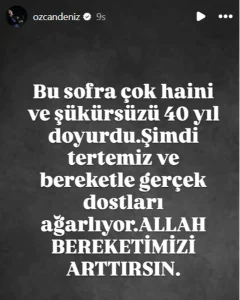 Tüm bunların üstüne ünlü sanatçı Özcan Deniz sessizliğini bozdu. Yılbaşı paylaşımı nedeniyle kız kardeşi Yurda Gürler’in tepkisine cevap verirken eşi Samar Dadgar’ı da ailesine karşı savundu. Deniz, sosyal medya üzerinden peş peşe şu mesajları paylaştı: