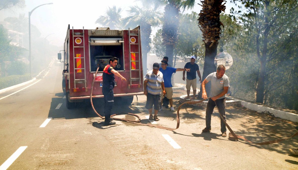 Muğla’nın Bodrum ilçesine bağlı Bitez Mahallesi’nde ünlülerin villalarının bulunduğu Aktur Tatil Sitesi’ndeki makilik alanda çıkan yangın, şiddetli rüzgarın etkisi ile hızla büyüdü. Yangına önce site işçileri ve tatilciler, ardından Muğla Büyükşehir Belediyesi itfaiye ekipleri müdahale etti.