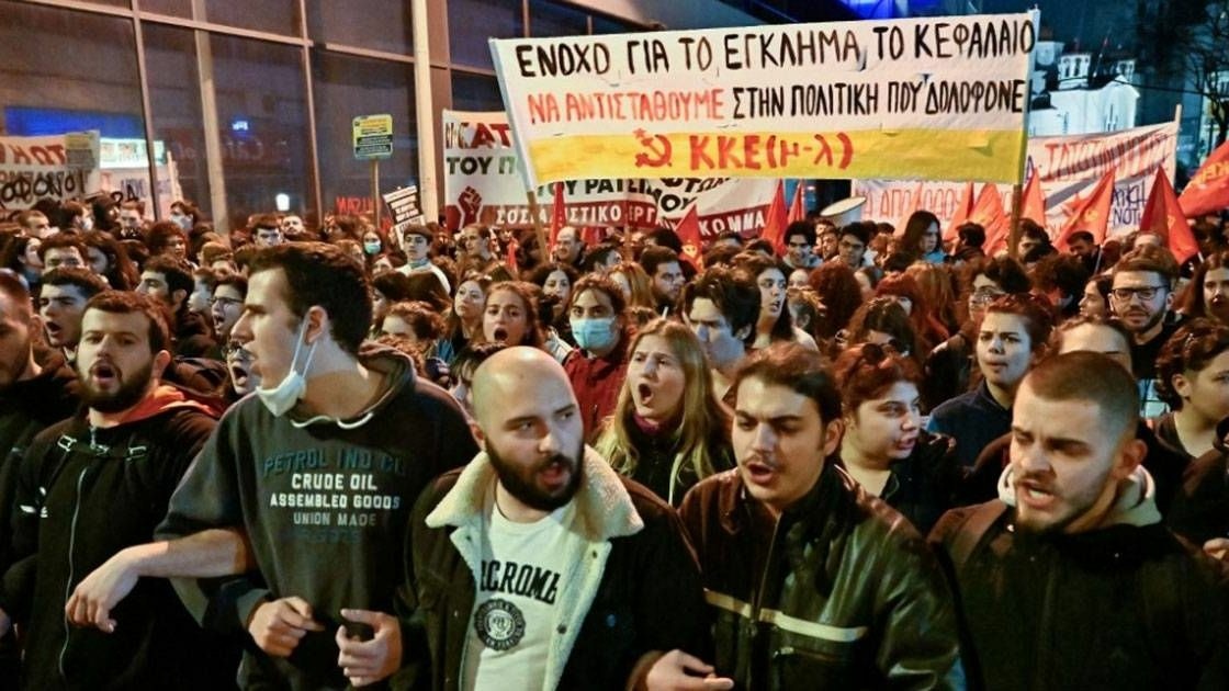 Başkent Atina'da, tren kazasını protesto eden binlerce gösterici, dün Hellenic Train ofislerinin bulunduğu binanın önünde bir araya gelerek parlamento binasının da bulunduğu Sintagma Meydanı'na yürümüştü.
